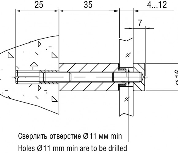 Держатель 5.32.04. L-35, D= 16 матированный никель Lincos