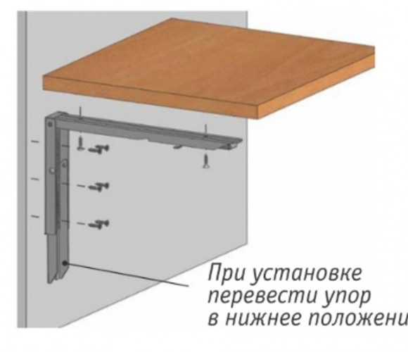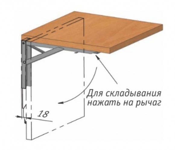 Примечание: отсутствие зазора между стеной и полкой в рабочем состоянии; зазор между стеной и опущенной полкой — 18 мм