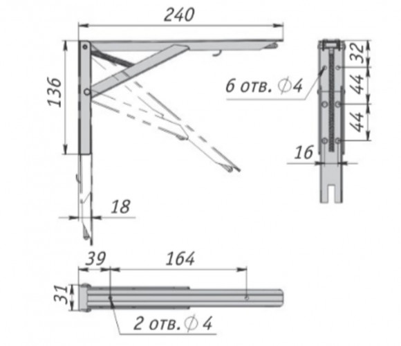 Кронштейн складной, белый (прав.+лев.) BRK240/WHITE