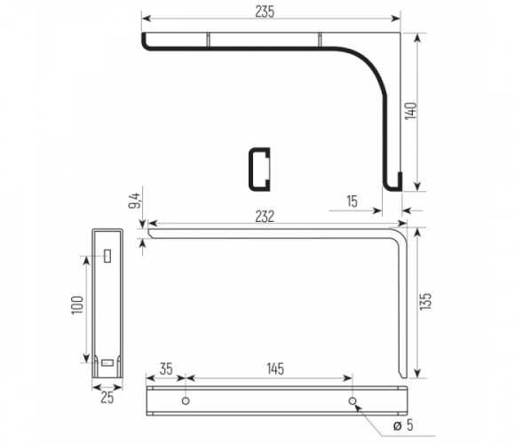 Полкодержатель декоративный 24см SH-24-01/WB-WS-24-001 (хром) 2 шт.