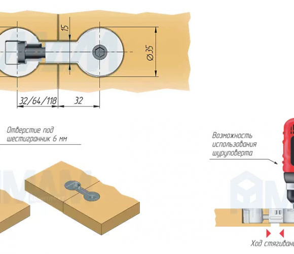 • стягивание осуществляется за считанные секунды с помощью шестигранного ключа 6 мм или шуруповерта с насадкой;