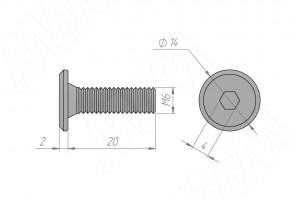 Винт М6х20 с плоской головкой под шестигранник HXS M6x20 FL