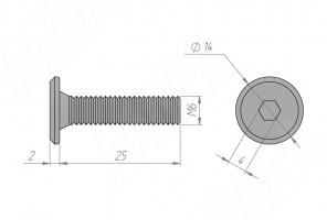 Винт М6х25 с плоской головкой под шестигранник HXS M6x25 FL