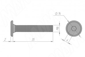 Винт М6х35 с плоской головкой под шестигранник HXS M6x35 FL