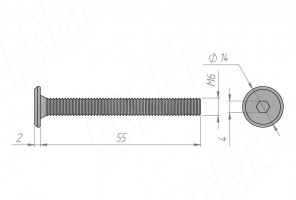 Винт М6х55 с плоской головкой под шестигранник HXS M6x55 FL