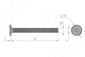 Винт М6х60 с плоской головкой под шестигранник HXS M6x60 FL