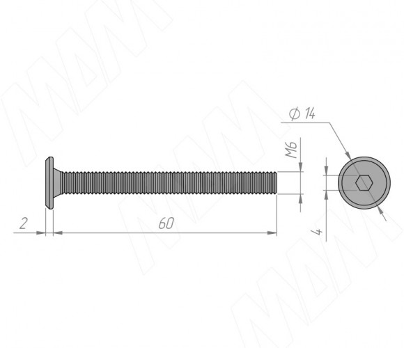 Винт М6х60 с плоской головкой под шестигранник HXS M6x60 FL