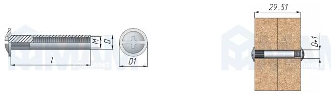 Стяжка межсекционная M4х16, Никель, арт.FTS M4x8 MP+арт.FTN М4х16 MP