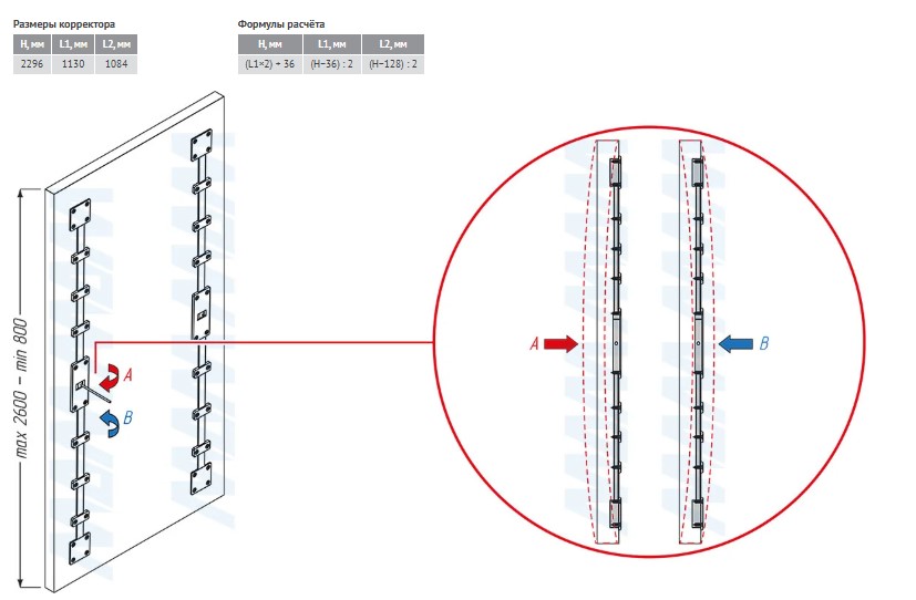 Внимание! В состав комплекта входит один корректор и комплектующие для него. Рекомендуется устанавливать не менее двух корректоров на один фасад.