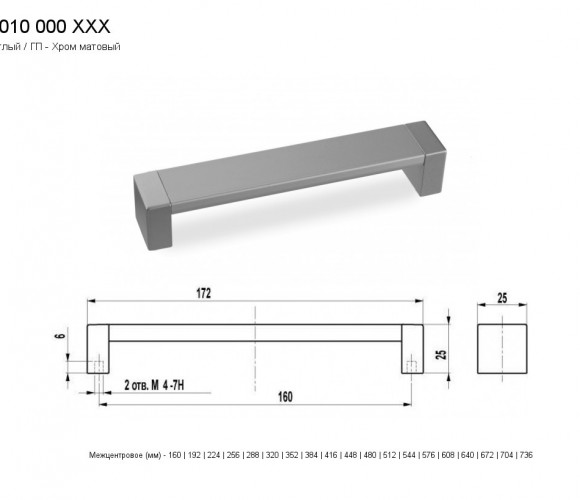 Ручка - рейлинг RL (06) 10.00.224 St светлый/St светлый