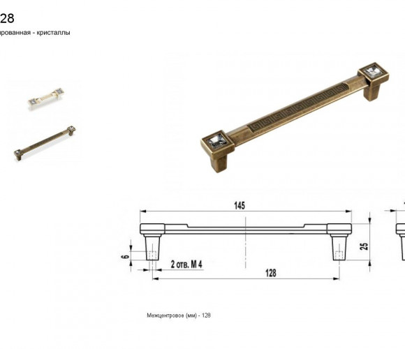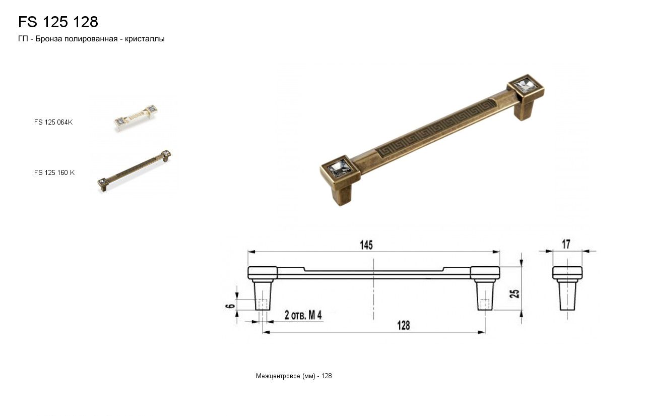 Ручка - скоба FS 125128 бронза полированная/кристаллы (TS)