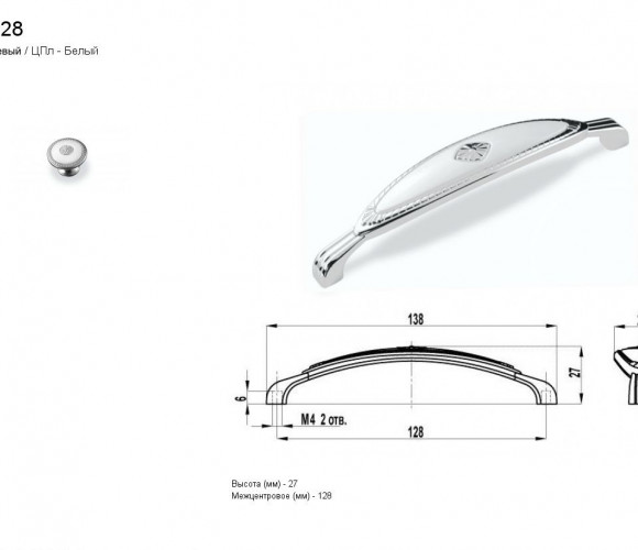 Ручка - скоба FS 138128 Хром глянцевый/белый (ТЗ)