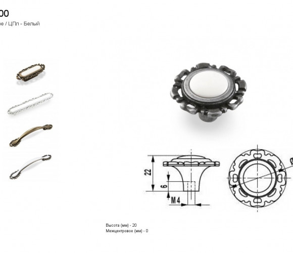Ручка - грибок FB 033000 Старое олово/белый