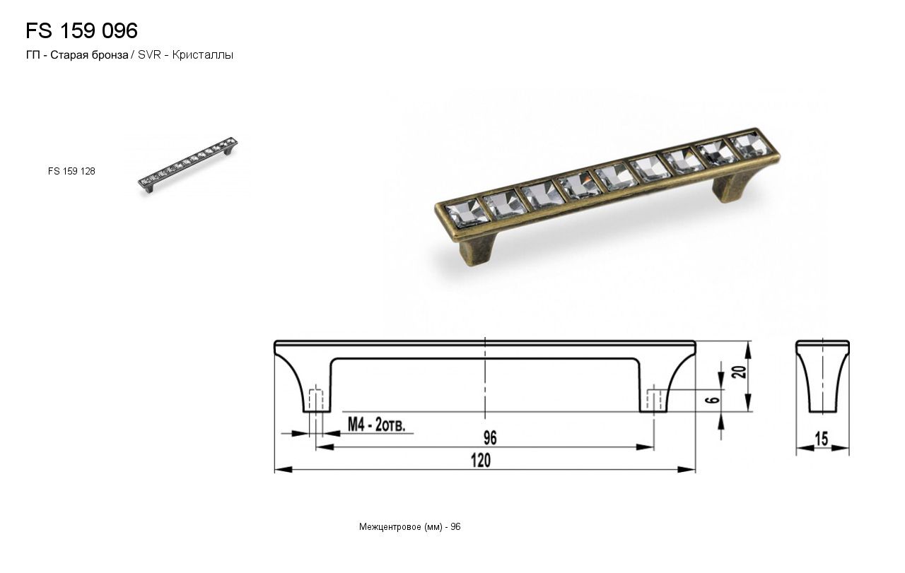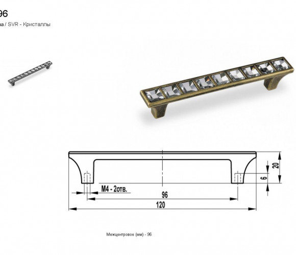 Ручка - скоба FS 159096 Старая бронза/кристаллы