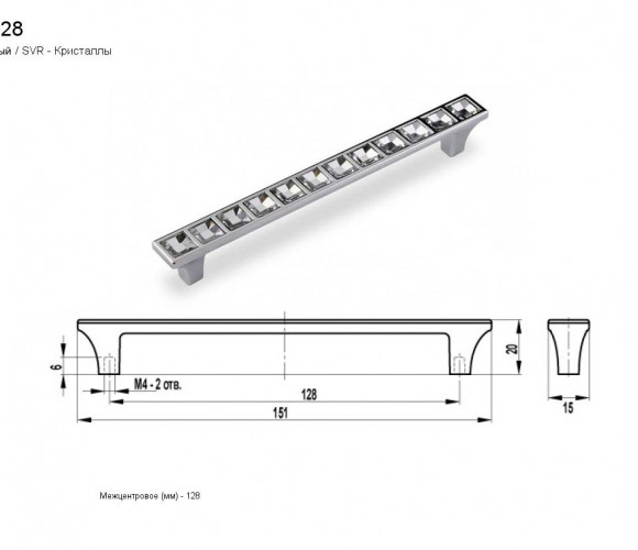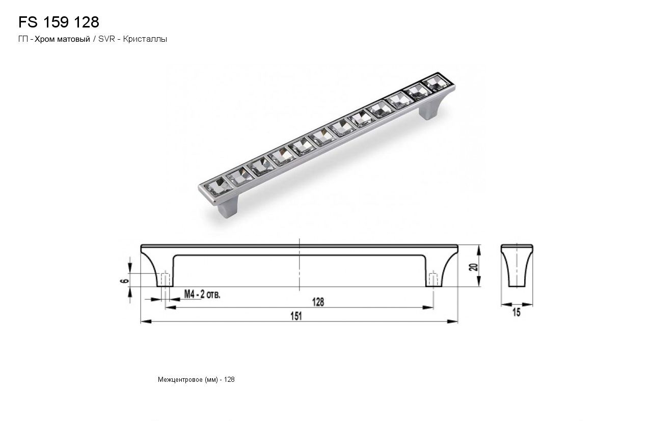 Ручка - скоба FS 159128 Хром матовый/кристаллы