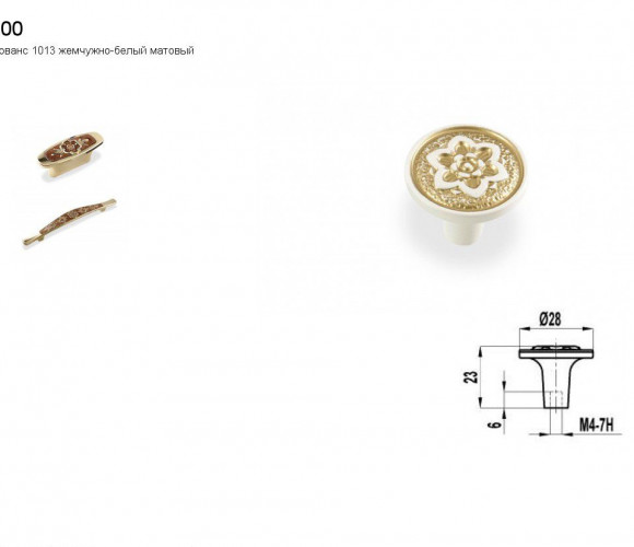 Ручка - грибок FB 019000 Золото прованс/1013 жемчужно-белый матовый