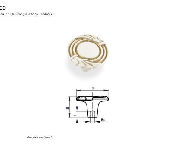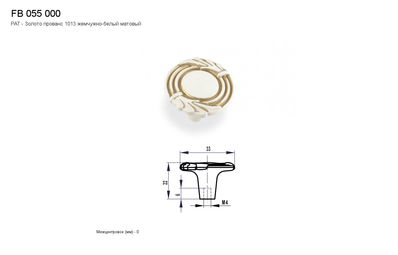 Ручка - грибок FB 055000 Золото прованс/1013 жемчужно-белый матовый