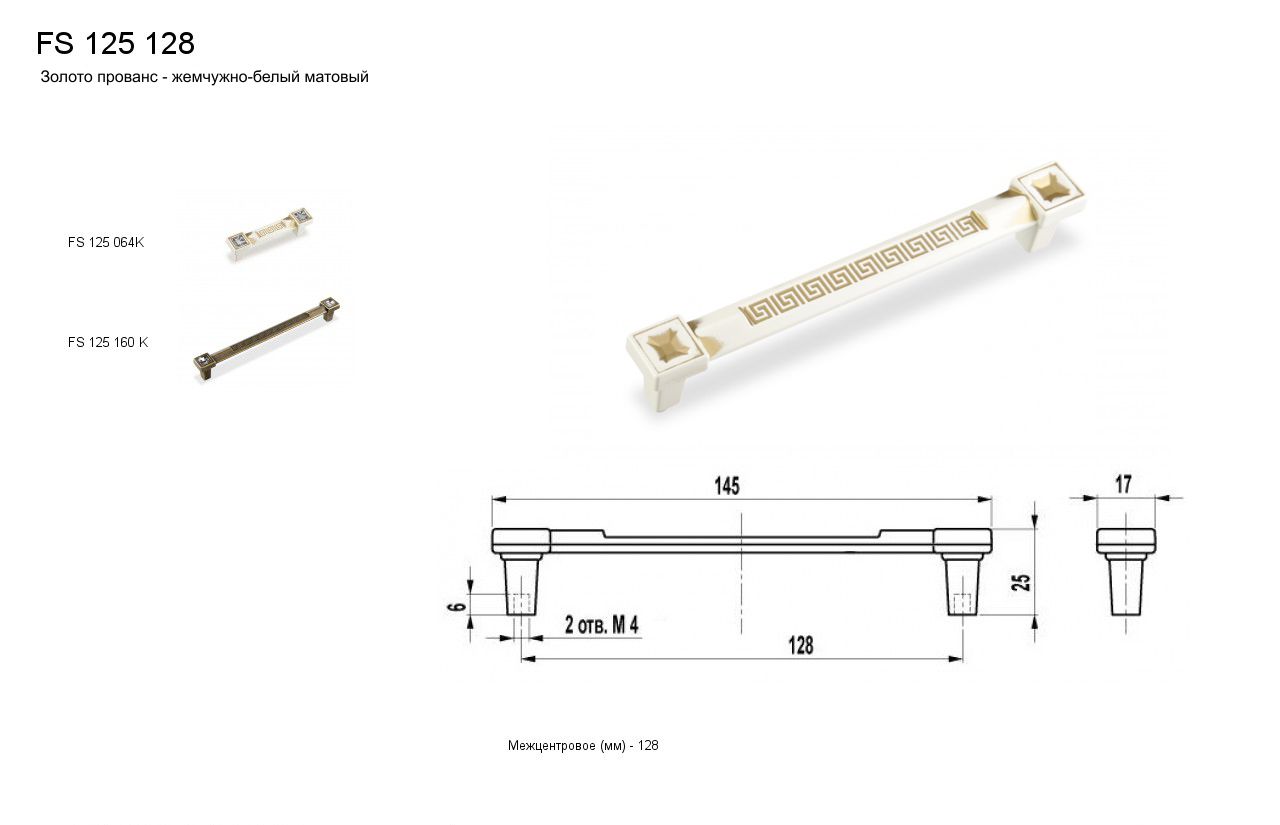 Ручка - скоба FS 125128 Золото прованс/1013 Жемчужно-белый матовый (30 шт.)