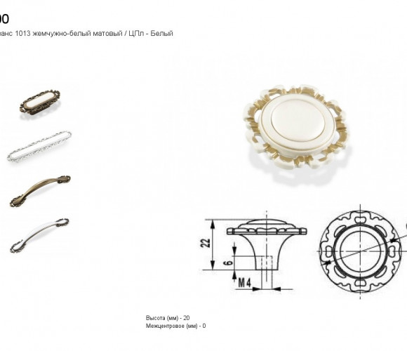 Ручка - грибок FB 033000 Золото прованс/1013 жемчужно-белый матовый (ТЗ)