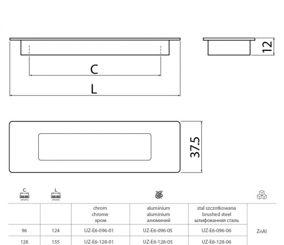 Ручка врезная UZ-E6-128-01 хром
