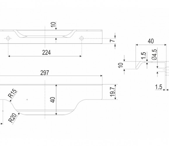 TERA подойдёт как для узких бутылочниц и корзин-карго, так и ящиков формата макси. Торцевую ручку, независимо от размера, можно устанавливать не только чётко в размер фасада, но и как широкий язычок. Ручки в виде язычков прекрасно выполняют свою функциональную и эстетическую роль на более широких фасадах.