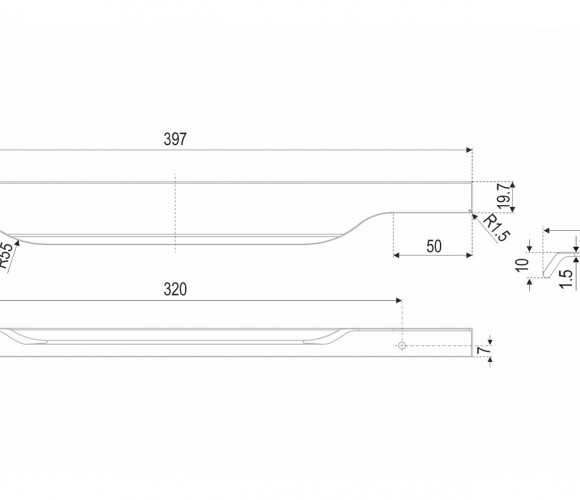TERA подойдёт как для узких бутылочниц и корзин-карго, так и ящиков формата макси. Торцевую ручку, независимо от размера, можно устанавливать не только чётко в размер фасада, но и как широкий язычок. Ручки в виде язычков прекрасно выполняют свою функциональную и эстетическую роль на более широких фасадах.