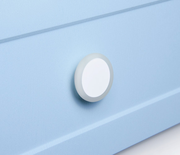 LOLLIPOP RC600 — детская ручка-кнопка из прочной и безопасной для ребёнка конструкции: модель имеет основу для крепления из цинк-алюминия, на которую надевается мягкая насадка из пищевого силикона. Металлическая резьба основы не деформируется при сильной затяжке, что гарантирует прочное и устойчивое соединение ручки с поверхностью фасада. Изделие в виде круга обрамлено полупрозрачными вставками, обеспечивая надёжный эргономичный хват даже детскими пальчиками.