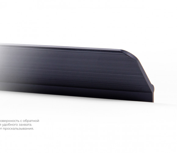 KANT RT013 — геометричная торцевая ручка из алюминия, с трубкообразным выступом и рифлением в зоне захвата для эргономичного использования ручки без соскальзывания. Устанавливается наложением на фасад толщиной от 16 мм.
