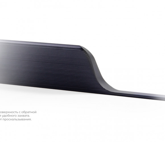 Конструкция ручки имеет детально проработанный выступ по всей длине, что создаёт эффект погружения фасада, аккуратно закрывая его края. Рифлёное покрытие в зоне захвата обеспечит эргономичное использование ручки без соскальзывания.