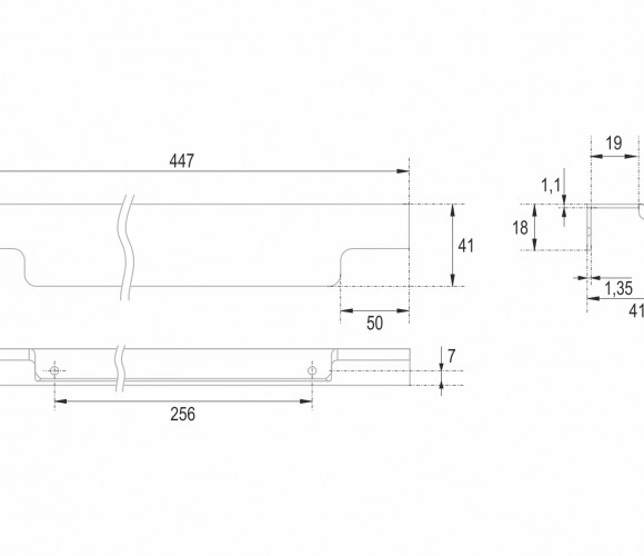 Конструкция ручки имеет детально проработанный выступ по всей длине, что создаёт эффект погружения фасада, аккуратно закрывая его края. Рифлёное покрытие в зоне захвата обеспечит эргономичное использование ручки без соскальзывания.