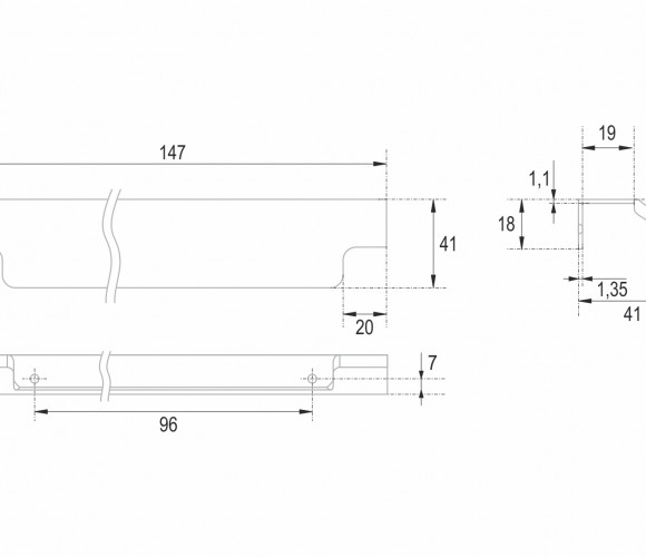 Конструкция ручки имеет детально проработанный выступ по всей длине, что создаёт эффект погружения фасада, аккуратно закрывая его края. Рифлёное покрытие в зоне захвата обеспечит эргономичное использование ручки без соскальзывания.