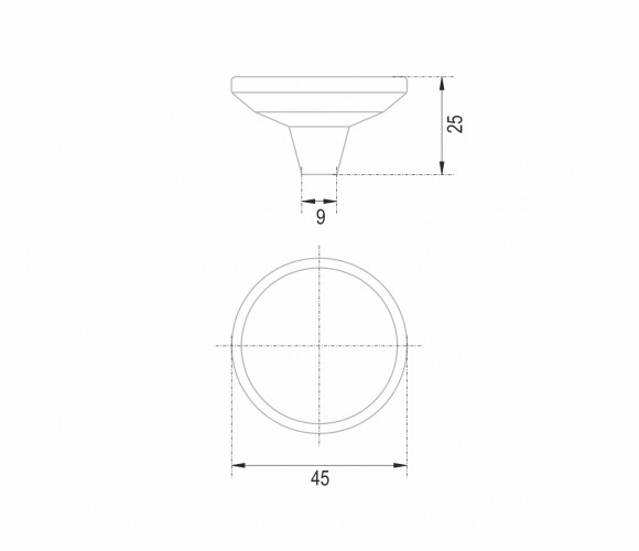 Ручка для мебели и дизайна диаметром 45 мм может использоваться самостоятельно на фасадах любой ширины.