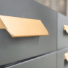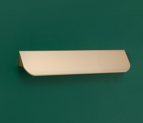 Форма модели позволяет расположить её в край или по центру фасада, креплением горизонтально, а также вертикально у левого и правого торца фасада. Конструкция ручки с острыми краями плотно прижимается к поверхности фасада, создавая эффект естественного продолжения.