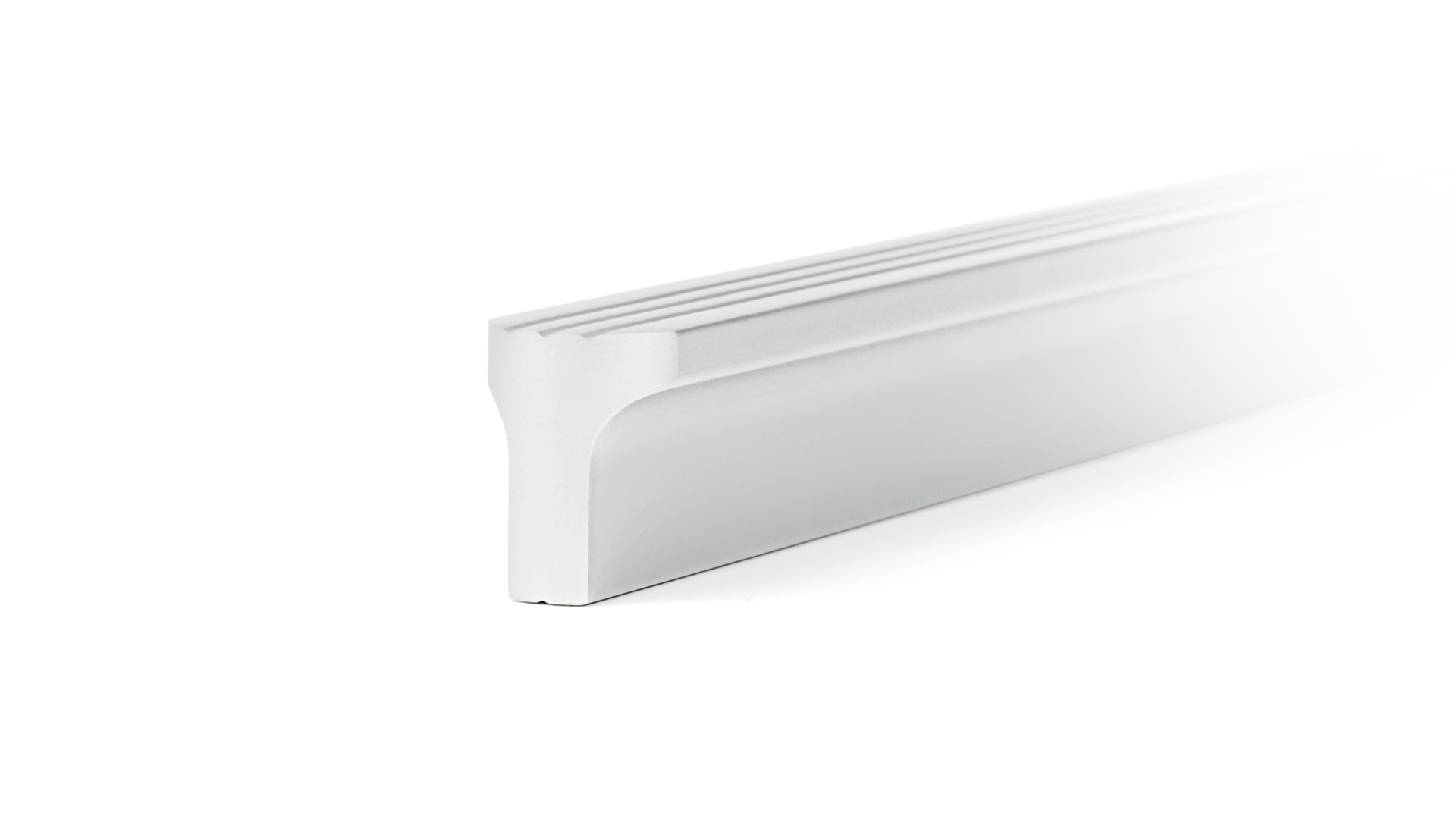 Ручка представлена как в небольших размерах от 128 мм, так и в форм-факторе 960 мм. SHELL RS064 можно устанавливать не только вертикально, но и горизонтально — для завершённого образа мебельного гарнитура.