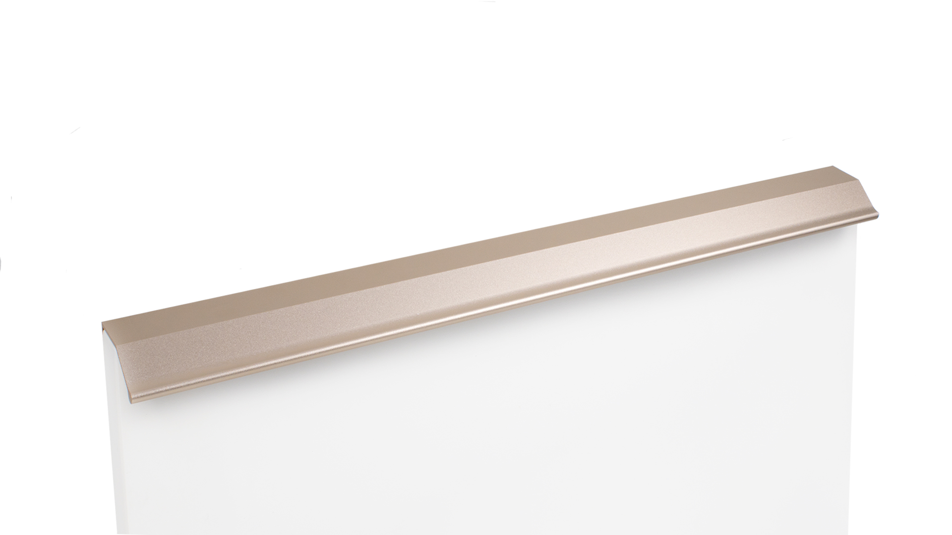 METRICA RT112 — торцевая ручка из алюминия, с геометричным выступом и рифлением в зоне захвата для эргономичного использования. Устанавливается наложением, подходит для фасадов толщиной от 16 мм до 20 мм.