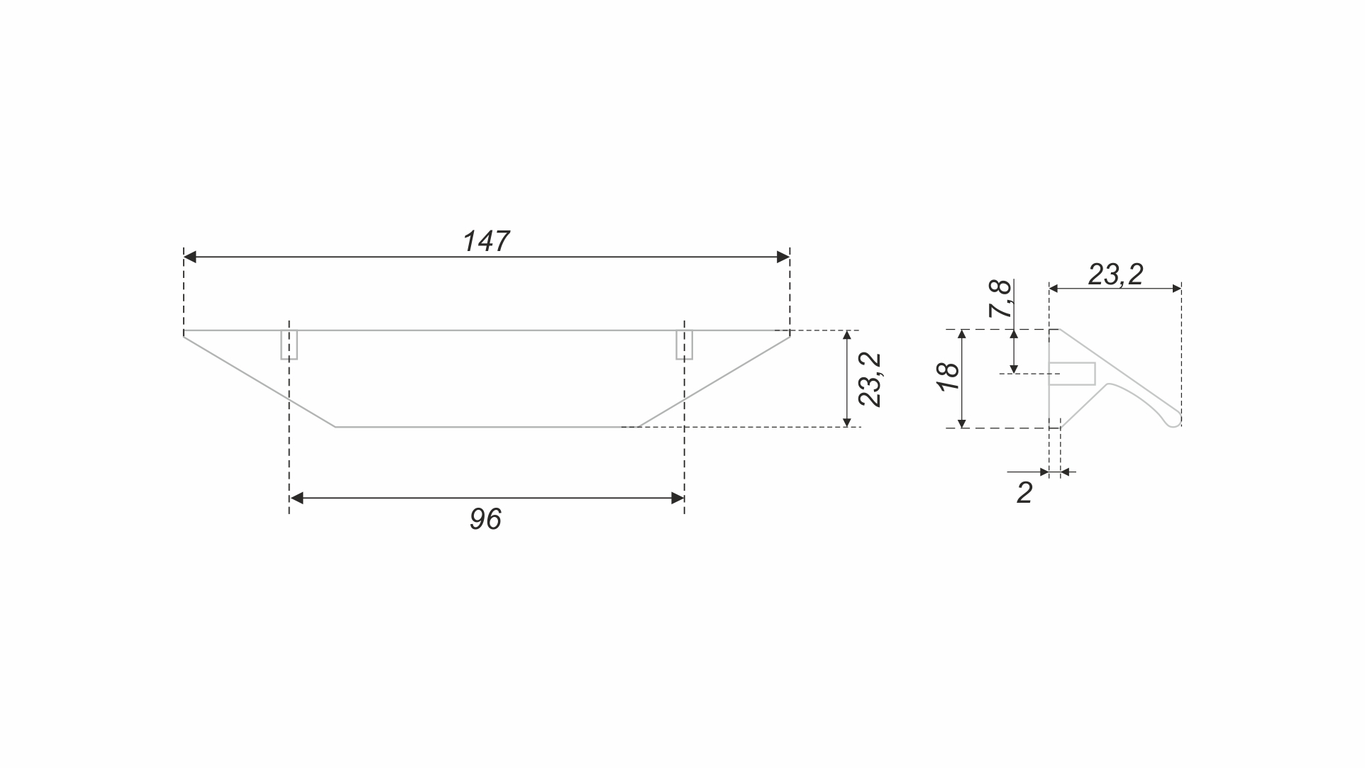 RICK RS157 — фальшторцевая ручка-скоба с геометричным выступом, подходит для фасадов толщиной от 16 мм до 18 мм.
