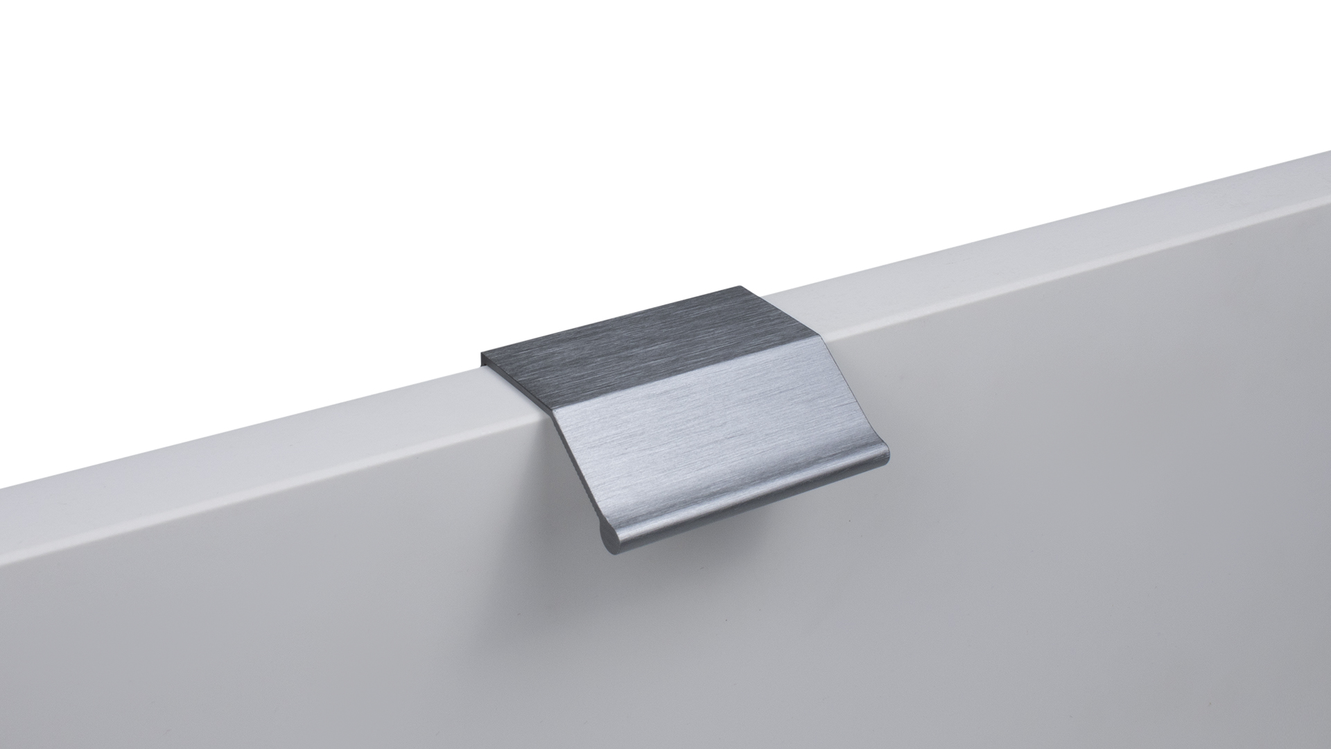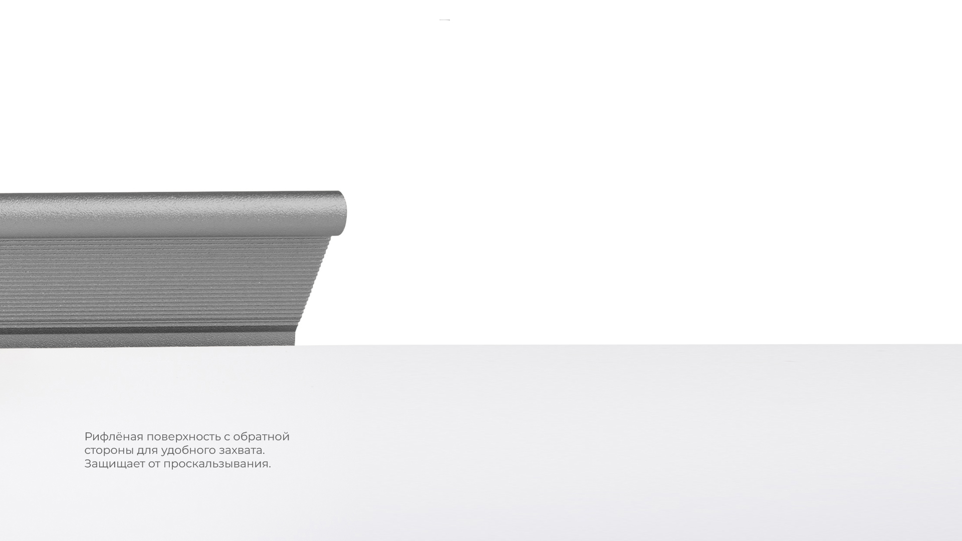 METRICA RT112 — торцевая ручка из алюминия, с геометричным выступом и рифлением в зоне захвата для эргономичного использования. Устанавливается наложением, подходит для фасадов толщиной от 16 мм до 20 мм.