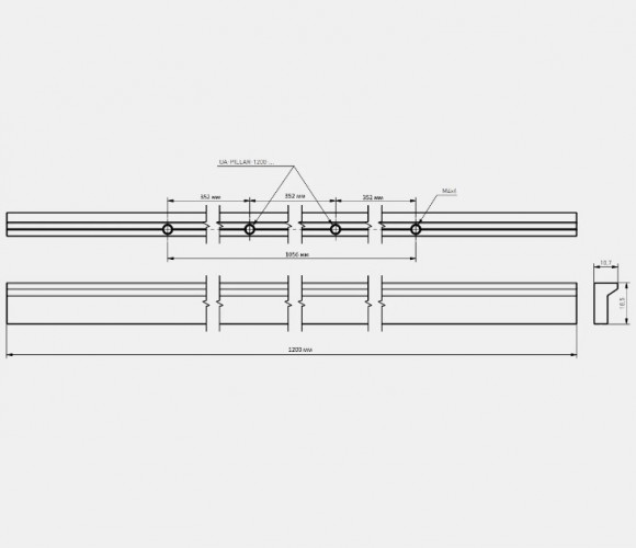 Ручка мебельная алюминиевая PILLAR L-1200 мм, светлое брашированное золото - лицевая фурнитура, предназначенная для установки на высокие и широкие фасады. В частности используется для дверей гардеробных. Применима для тяжелых фасадов.