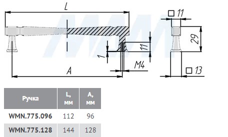 Ручка-скоба 128мм бронза Орваль WMN.775.128.00А8