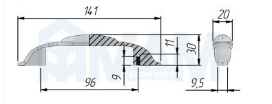 Ручка-скоба 96мм графит/керамика черная серебряные узоры WMN.97.23.P2.096.G9
