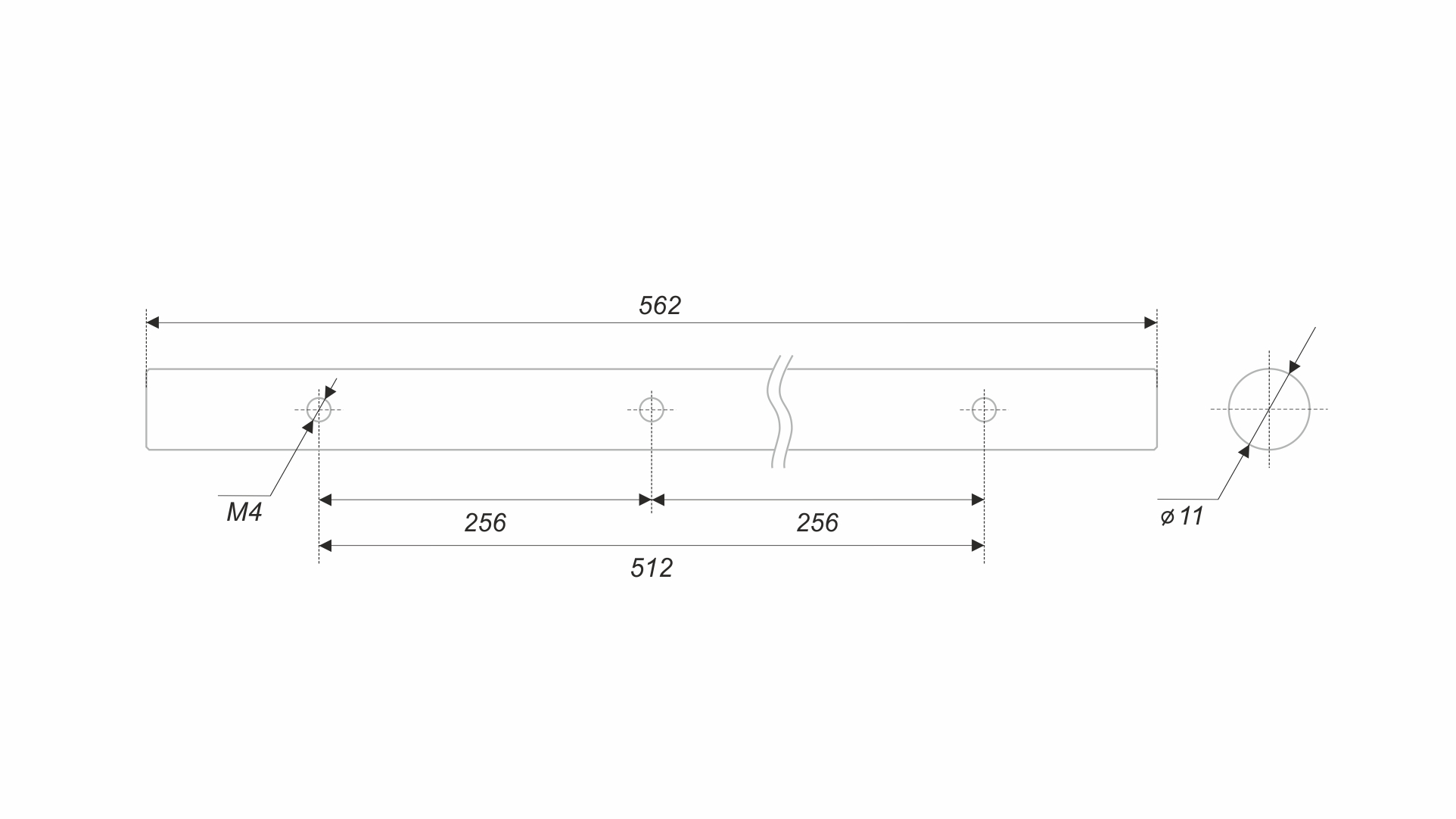 В модели предусмотрены готовые монтажные отверстия для держателей мебельной ручки и крепления готовой ручки к фасаду. В ручках с межцентровым расстоянием от 128 до 320 мм по 2 монтажных отверстия, а в удлинённых форматах — (512 мм, 960 мм, 1152 мм) 3: по краям и в центр прутка.