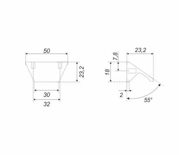 RICK RS157 — фальшторцевая ручка-скоба с геометричным выступом, подходит для фасадов толщиной от 16 мм до 18 мм.