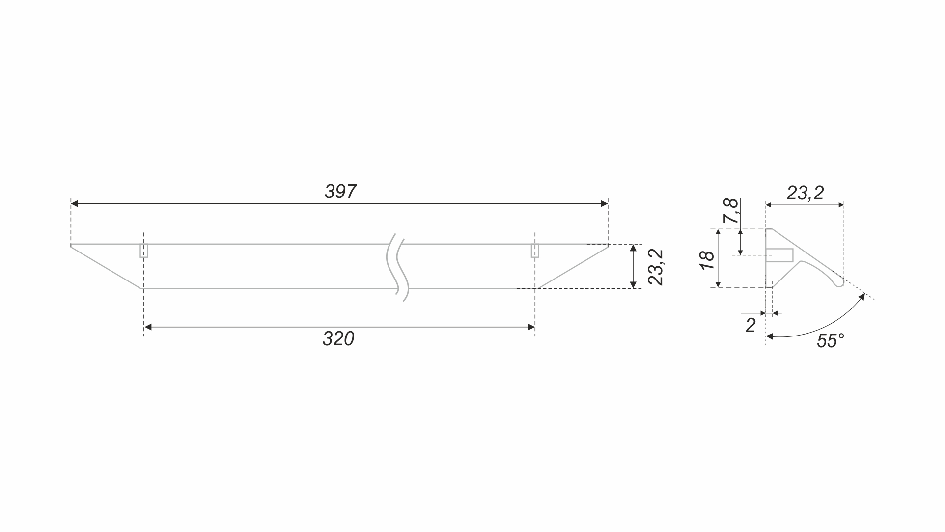 RICK RS157 — фальшторцевая ручка-скоба с геометричным выступом, подходит для фасадов толщиной от 16 мм до 18 мм.