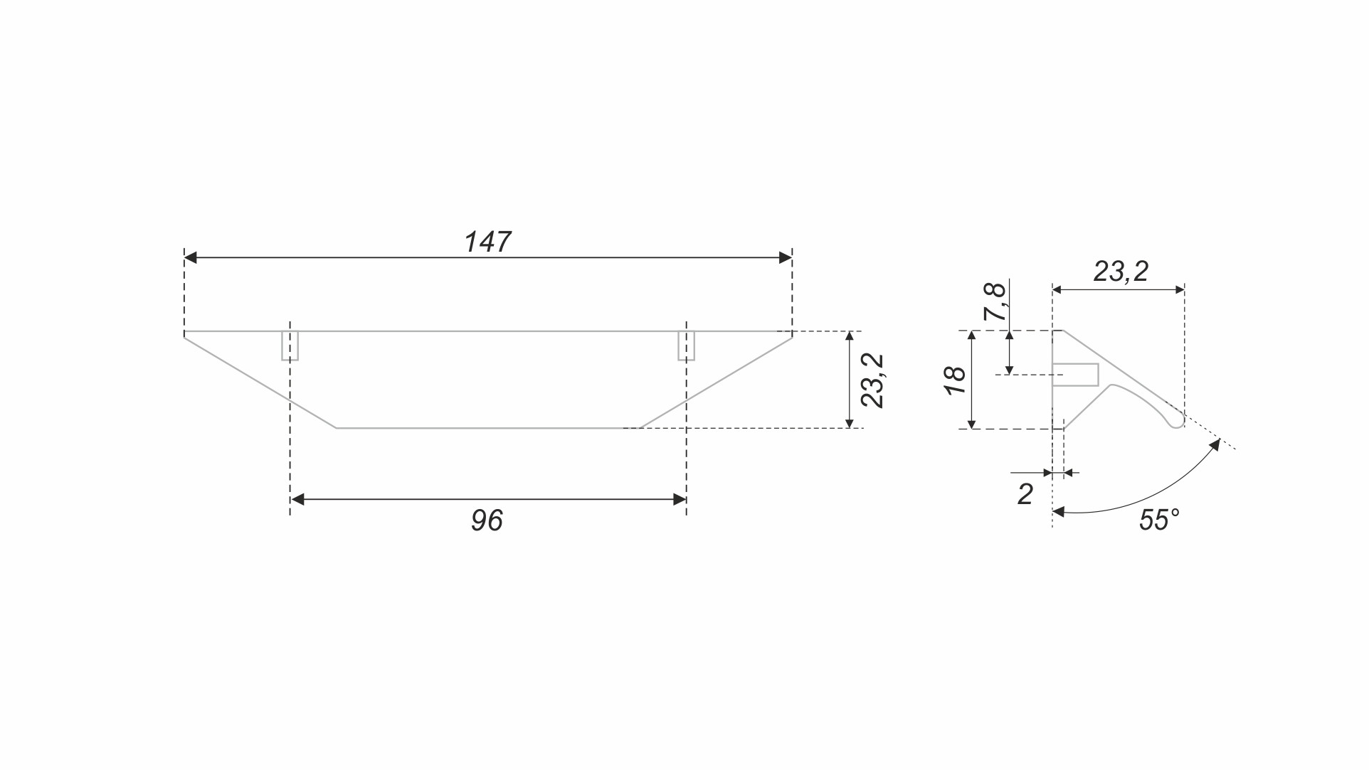 RICK RS157 — фальшторцевая ручка-скоба с геометричным выступом, подходит для фасадов толщиной от 16 мм до 18 мм.