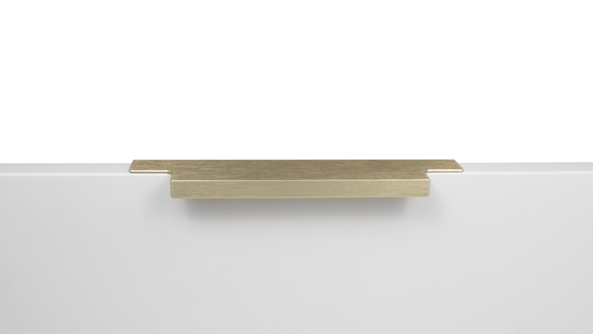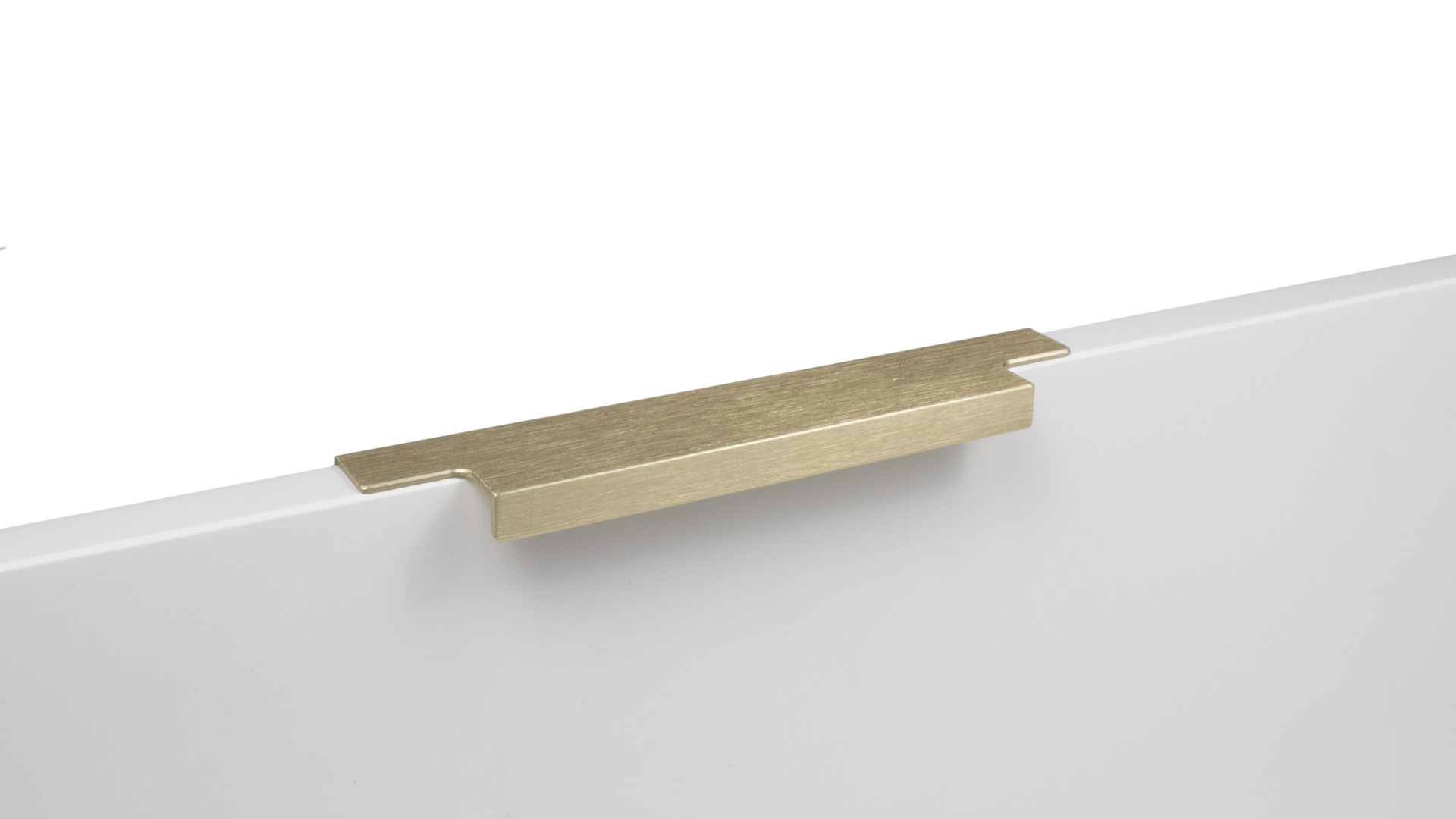 Ручка имеет богатую палитру цветовых решений и разнообразие длин. В зависимости от длины, модель допускает размещение двумя способами — «в размер» фасада и по центру широких фасадов (как большой «язычок»).