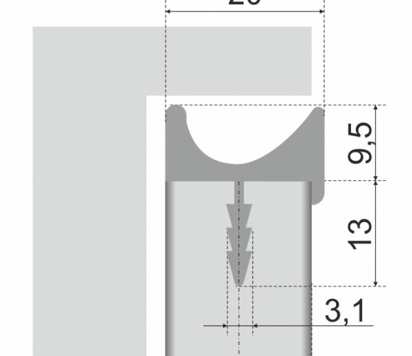 U-LINE RP004 — алюминиевая профильная ручка U-образной формы, которая врезается в заранее подготовленный паз в торце фасада толщиной до 18 мм. Ручки реализуются в размере 3000 мм и подгоняются под ширину фасада.