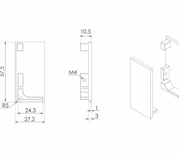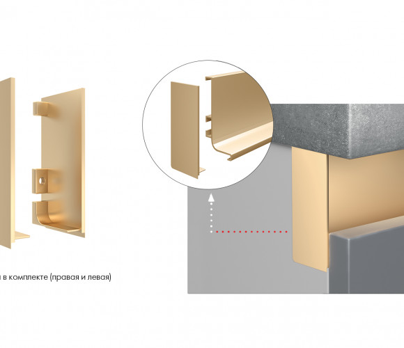 В комплект входит: левая и правая заглушки, 2 винта для крепления заглушки к профилю, ключ-шестигранник для фиксации винтов.