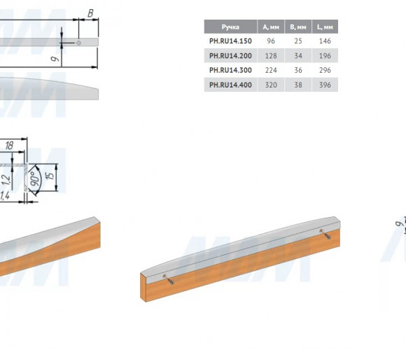 Профиль-ручка крепление саморезами черный матовый 146мм (анод) PH.RU14.150.BL
