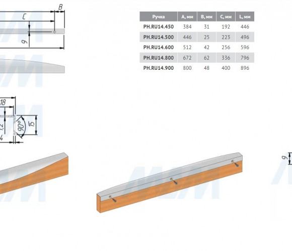 Профиль-ручка крепление саморезами белый матовый 896мм (краска) PH.RU14.900.WHT