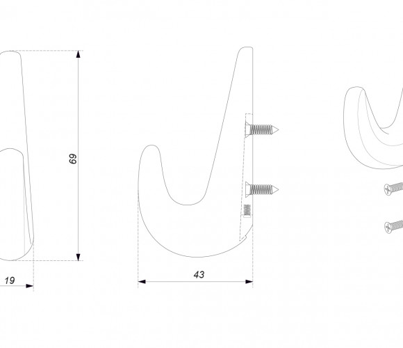 Серьёзное достоинство крючка в скрытом креплении с универсальной планкой, на которую надевается крючок и надёжно фиксируется винтом, не оставляя при этом следов установки. Именно универсальная планка допускает возможность замены модели в рамках одной ассортиментной линейки. Одним движением руки вверх вы можете снять крючок и установить на планку модель другого цвета.